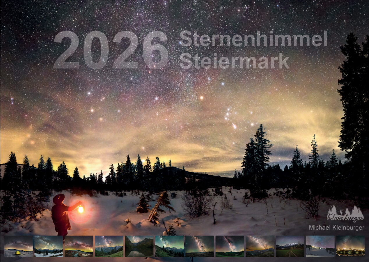 Auf vielfachen Wunsch gibt es heuer einen Wandkalender mit meinen schönsten Aufnahmen aus der Steiermark. Diese Region in Österreich zählt zu den letzten dunklen Flecken Mitteleuropas. Vom Hochschwab-Gebirge über den Nationalpark Gesäuse und den Naturpark Almenland bis hin zur Riegersburg – in diesem Kalender finden sich außergewöhnliche Aufnahmen vom Sternenhimmel über der Steiermark.